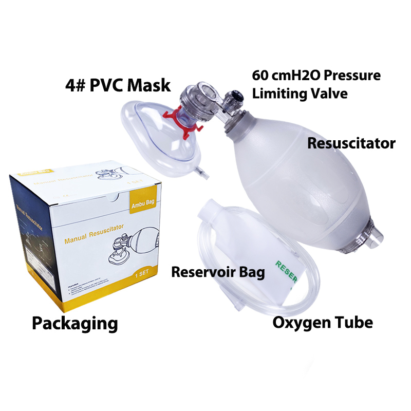 The SEBS manual resuscitator is a single-use manual ventilation emergency device made of medical-grade SEBS as its core material. It is used to provide positive pressure ventilation for patients with respiratory arrest or respiratory failure, serving as a standard tool for cardiopulmonary resuscitation (CPR) and pre-hospital/in-hospital emergency care.