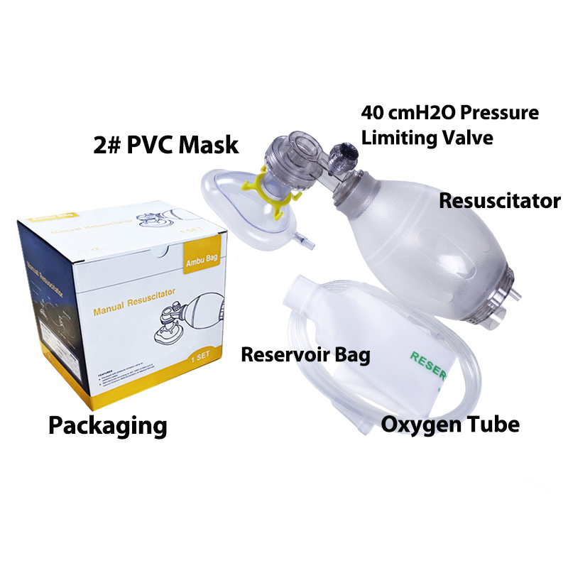 The pediatric SEBS manual resuscitator is a single-use manual ventilation emergency device made of medical-grade SEBS as its core material. It is used to provide positive pressure ventilation for patients with respiratory arrest or respiratory failure, serving as a standard tool for cardiopulmonary resuscitation (CPR) and pre-hospital/in-hospital emergency care.